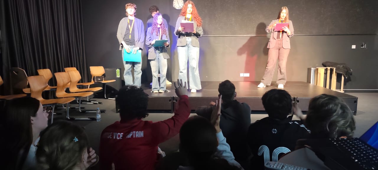 The second Theatre Debate in Cyprus was developed through an extended preparation pathway that combined artistic creation with democratic dialogue. In advance of the final event, seven workshops were organised between 16 January 2026 and 10 March 2026, gradually guiding participants from topic exploration and trust building to role development, rehearsal, audience interaction planning, and final presentation readiness. The in situ Theatre Debate was then delivered on 13 March 2026 at Lumio Private School in Paphos, an international school community representing 15 nationalities, which strengthened the intercultural and inclusion dimension of the activity.