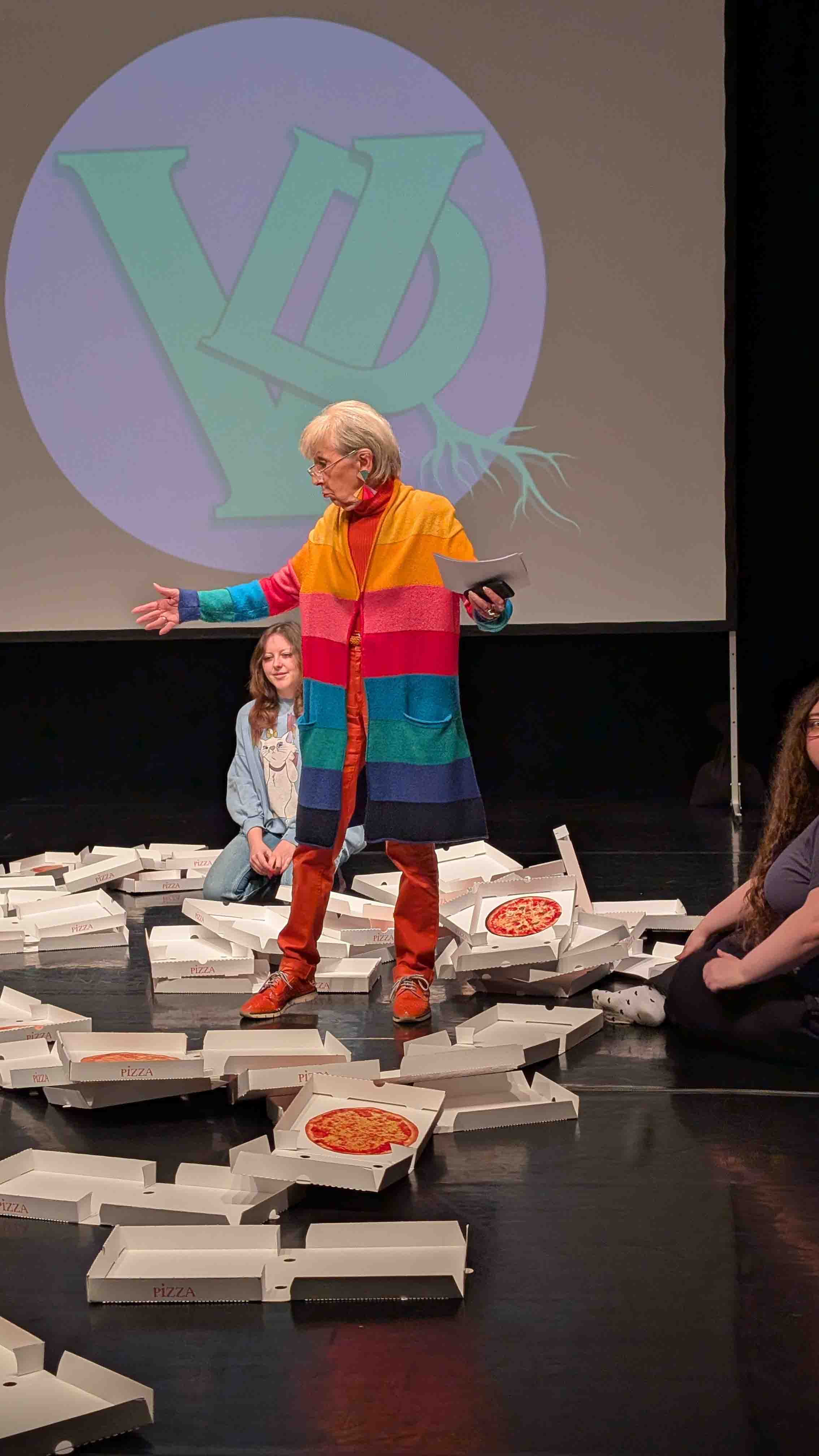 The final debate was explicitly described as more artistic than the previous one. It used video, dance choreography, music, and staged interaction to explore democracy, power, individuality, and resistance. A visualised explanation of the German pension system, audience interviews, a song about the misuse of power, and a staged conflict involving a “false Vera” all helped make political issues accessible and emotionally engaging.